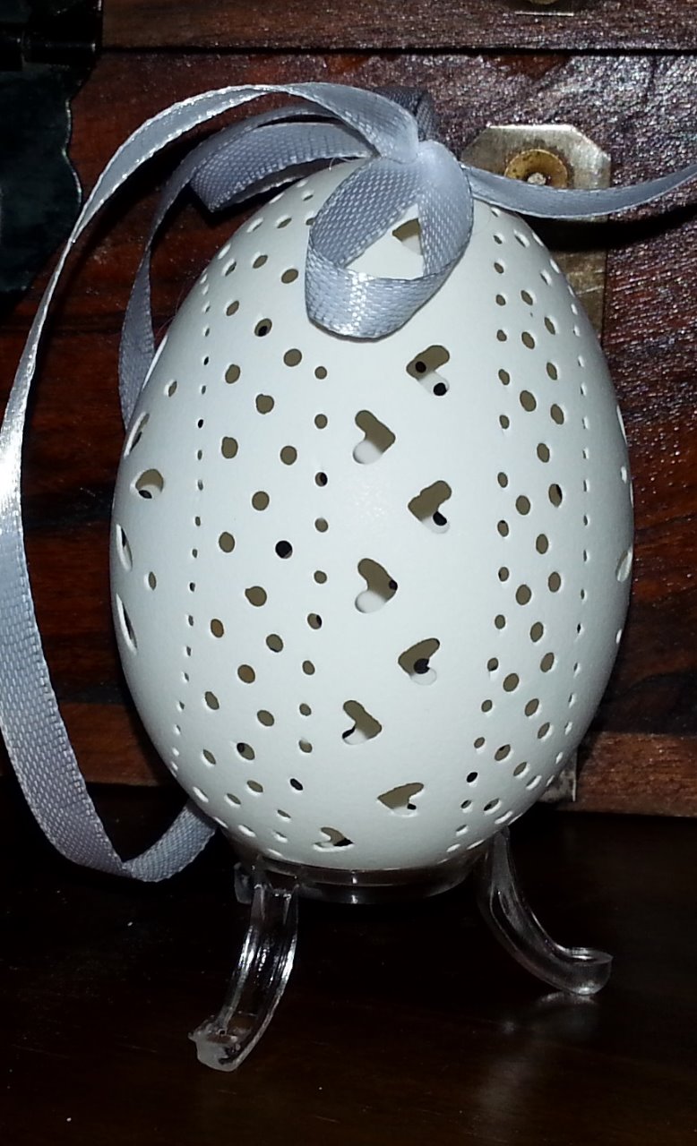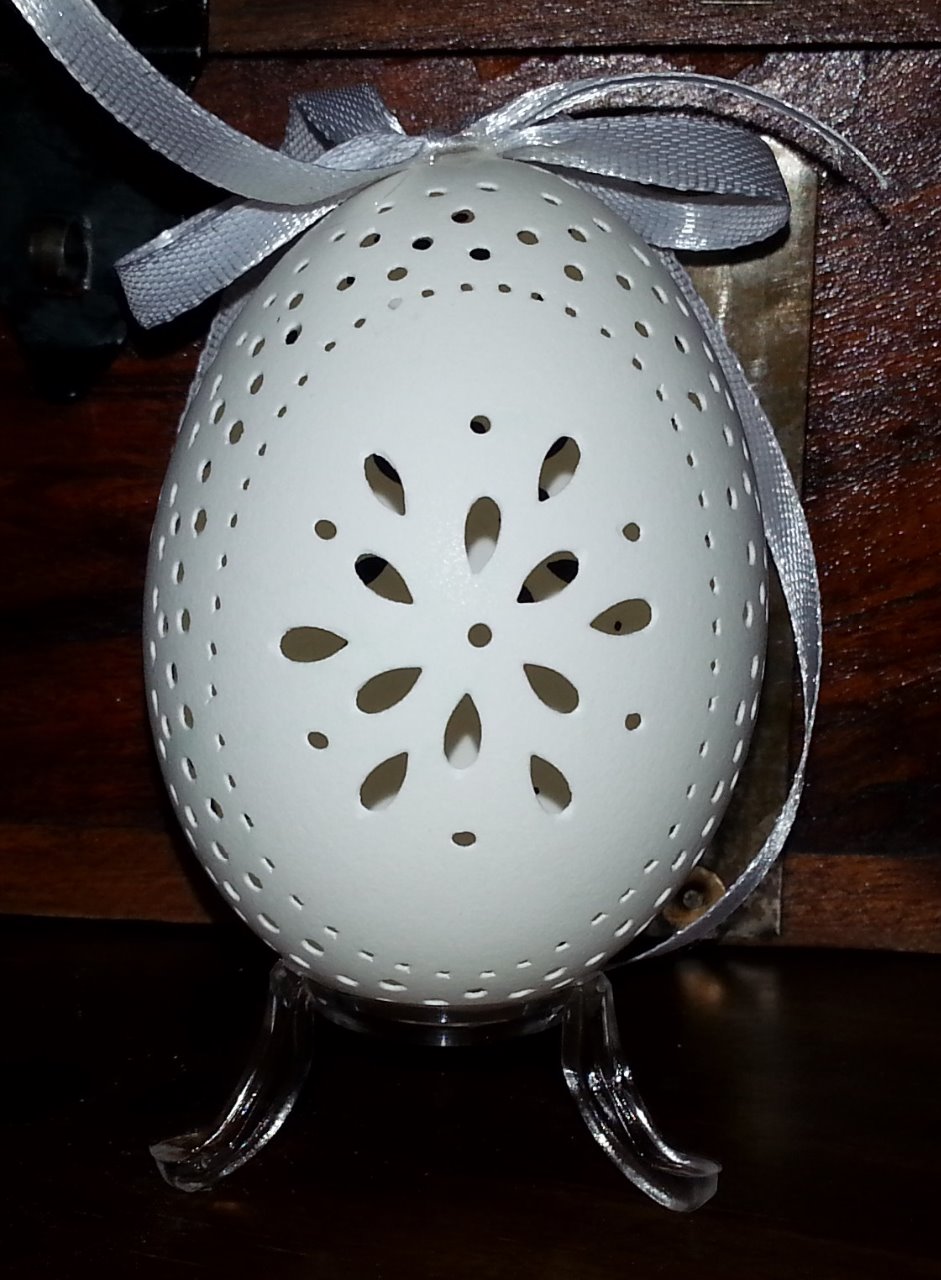Wunderschönes handgefertigtes Gänseei mit weißer Schleife.
